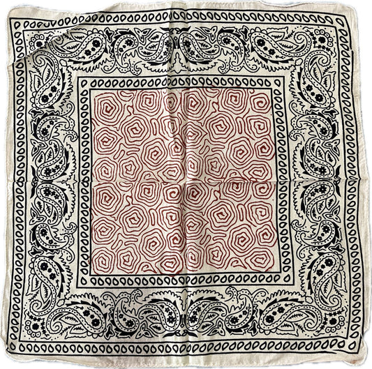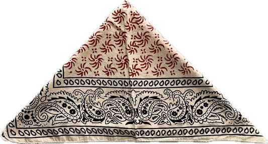 Natural Beige Bandana with Maroon & Black Paisley | Organic Cotton Scarf for Men & Women - Size 21x21 Inches