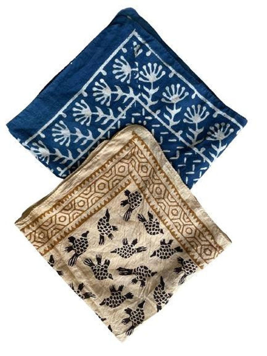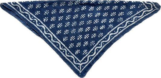 Blue Bandana - Hand Block Printed Cotton Bandana - Artistic Boho Square Scarf, Neckerchief & Kerchief