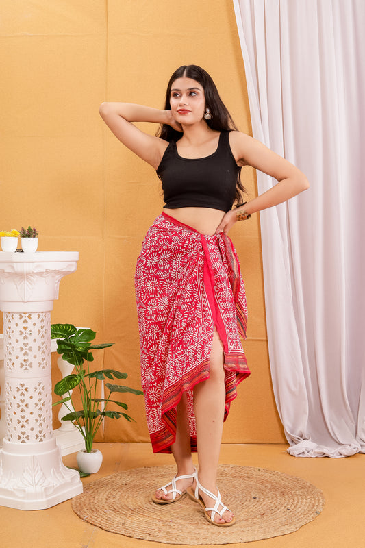 Red Sarong, Block Print Sarong, Fashion Shawl, Bikini Wrap, Plus Size Sarongs for Women