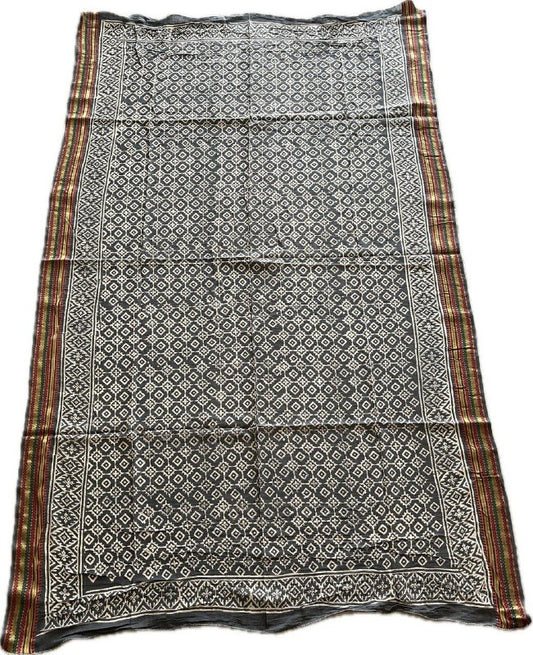 Long Sarong Cover Up, Golden Border (Zari) Pareo, Color - Light Black/Gray, Beach Wrap Pareo, Size 44"x72" Inches