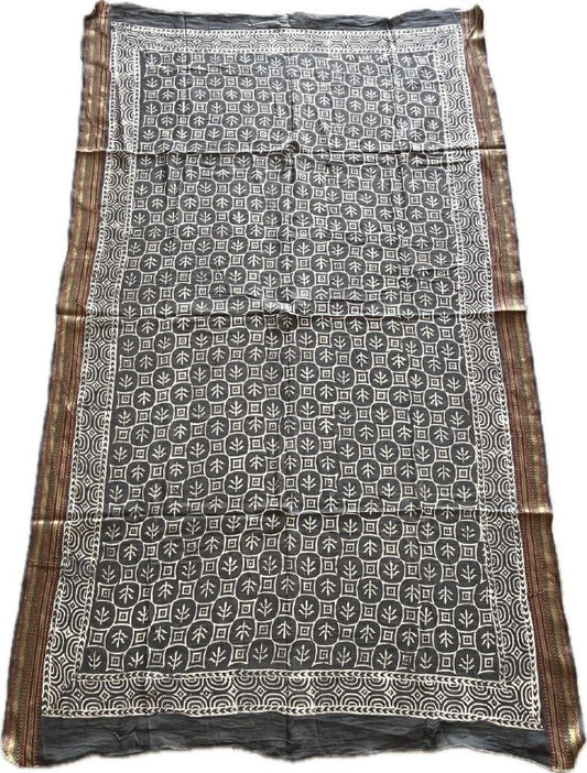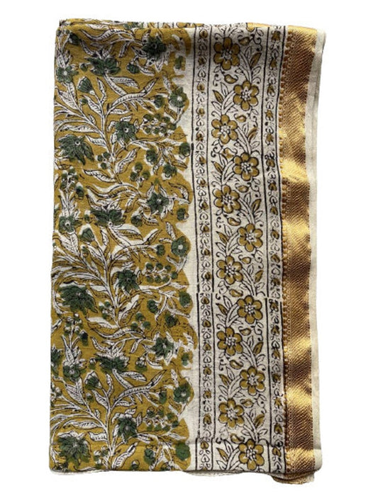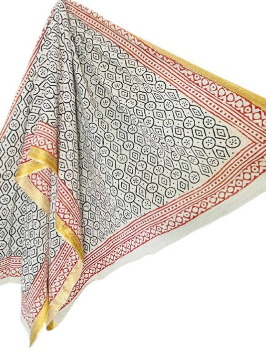 Cotton Sarong (Zari Border), Hand Block Printed Cotton Beach Wrap, Pareos, Plus Size Sarong, Bikini Cover Up, Size 44x72 Inches
