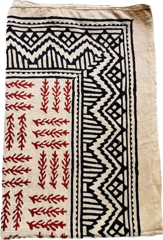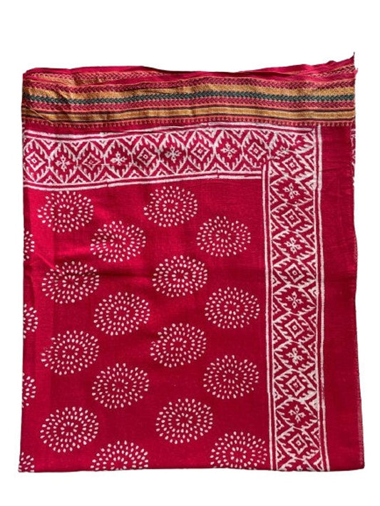 Red Sarong Silk Border, Hand Block Printed Cotton Beach Wrap, Pareos, Plus Size Sarong, Bikini Cover Up, Size 44x72 Inches