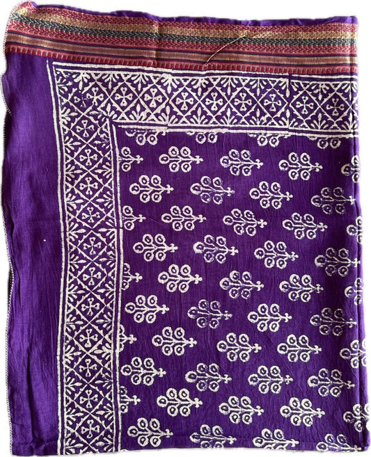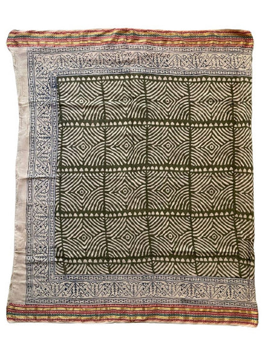 Long Scarf Silk Border, Hand Block Printed Cotton Beach Wrap, Pareos, Plus Size Sarong, Bikini Cover Up, Size 44x72 Inches