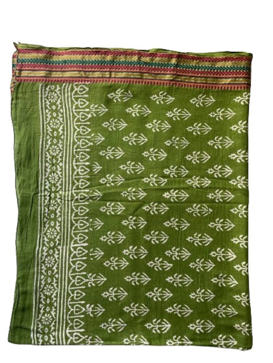 Silk Border Green Sarong, Hand Block Printed Cotton Sarong Wrap, Pareos, Plus Size Sarong, Bikini Cover Up, Size 44x72 Inches
