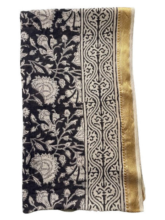 Golden Border (Zari) Long Scarf, Black Color Large Sarong, Cover up, Soft Fabric Scarf, Beach Wrap Pareo