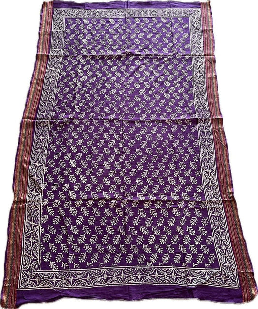 Purple Color Large Sarong, Golden Border (Zari) Long Scarf, Cover up, Soft Fabric Scarf, Beach Wrap Pareo