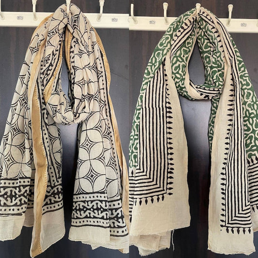 Set of 2 Hand Block Printed Cotton Sarong, Pareo for women, Beach Wrap, Coverup