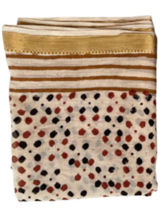 Cotton Sarong (Zari Border), Hand Block Printed Cotton Beach Wrap, Pareos, Plus Size Sarong, Bikini Cover Up, Size 44x72 Inches