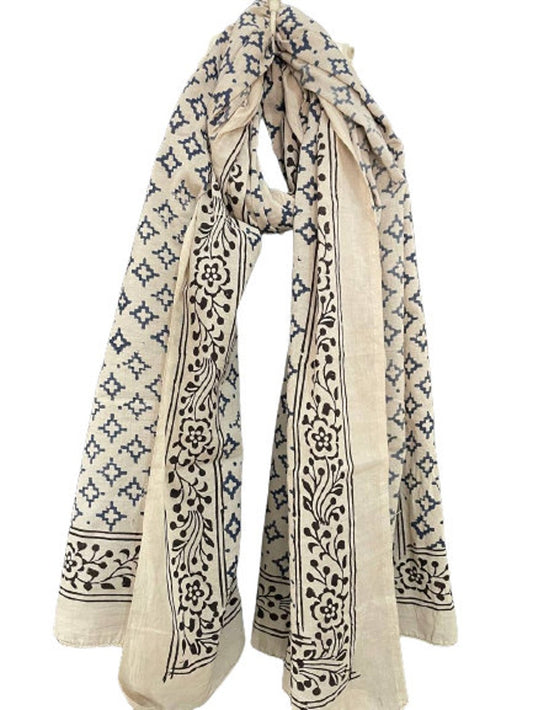 Blue Sarong, Block Print Sarong, Fashion Shawl, Bikini Wrap, Plus Size Sarong for Women and Men