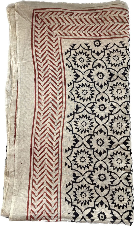 Hand Block Printed Sarongs, Silk Border Cotton Sarong Wrap, Pareos, Plus Size Sarong, Bikini Cover Up, Size 44x72 Inches