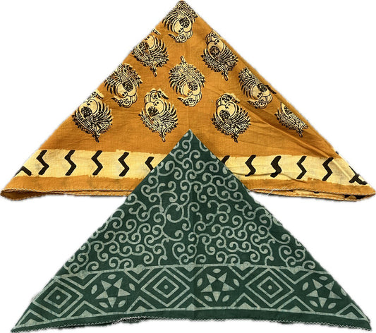 Neckerchief Set of 2 Cotton Bandanas, Kerchief, Handkerchief, Handmade Head Wrap, Gift For Her And Him